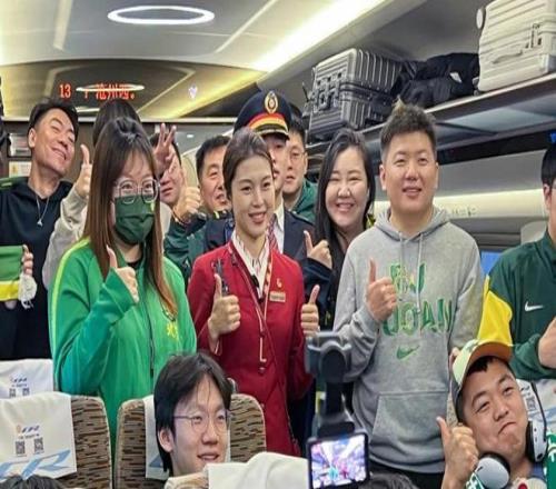 1000余名国安球迷乘坐“球迷专列”前往苏州为球队助威。——《北京青年报》