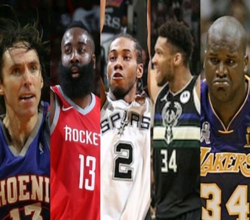 三阵:纳什、哈登、伦纳德、字母哥、奥尼尔。